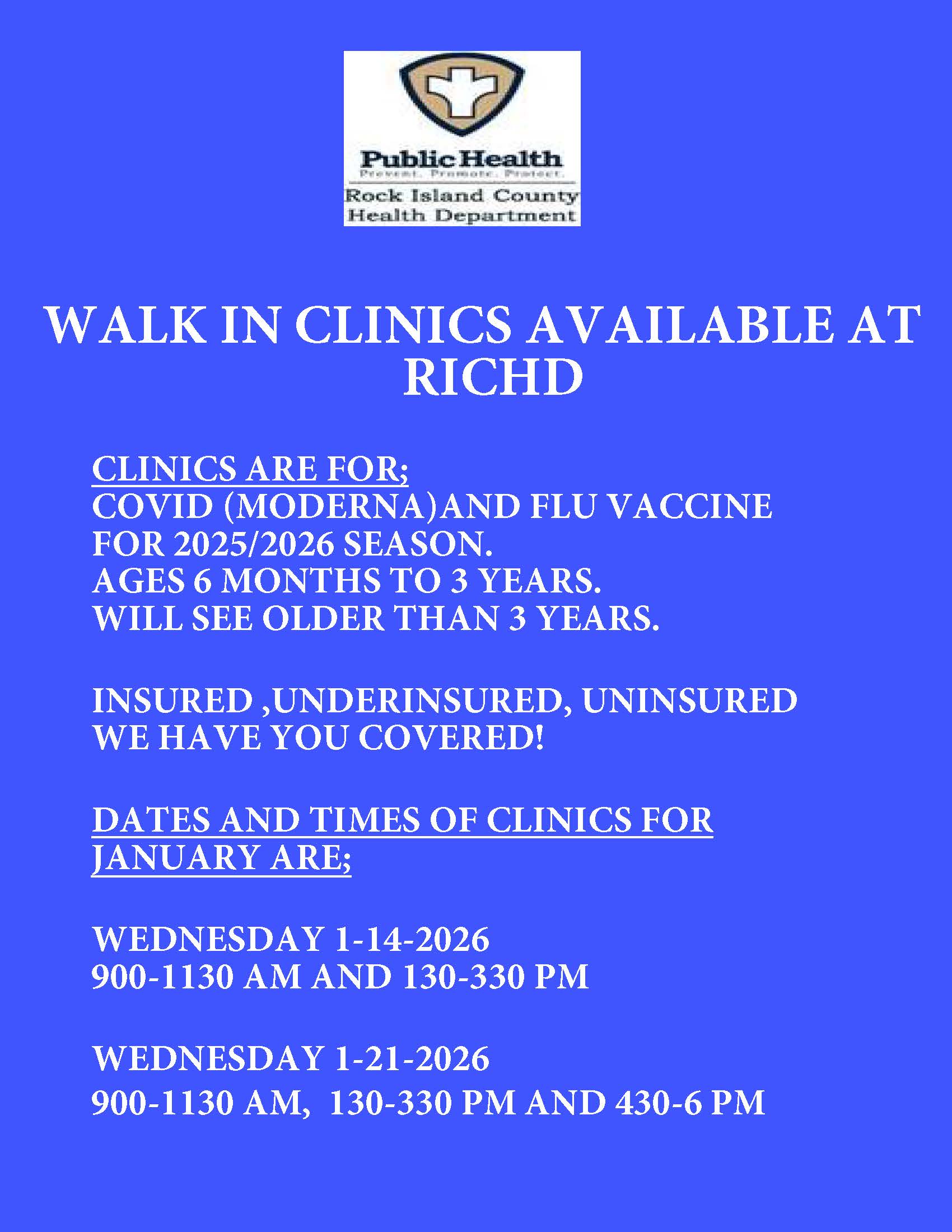 The Rock Island County Health Department prevents disease, promotes wellness of mind and body, protects public health and prepares for emergencies.